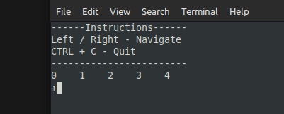 stdscr.addstr(len(instructions) + 1, cur_index * 5, f"\u2191")